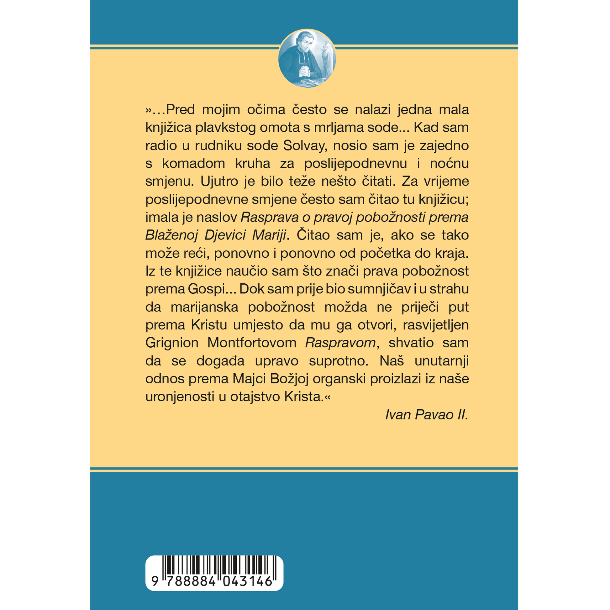 »Cesto mi se pred o?ima nalazila jedna mala knjižica naslova Rasprava o pravoj pobožnosti prema Blaženoj Djevici Mariji. ?itao sam je više puta, uvijek iznova. Pribojavaju?i se da marijanska pobožnost prije?i put prema Kristu, rasvijetljen ovim djelom, shvatio sam da se doga?a upravo suprotno. Naš unutarnji odnos prema Mariji prirodno proizlazi iz naše uronjenosti u otajstvo Krista.«